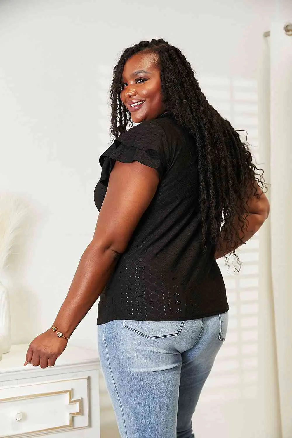 Elegant Eyelet Flutter Blouse